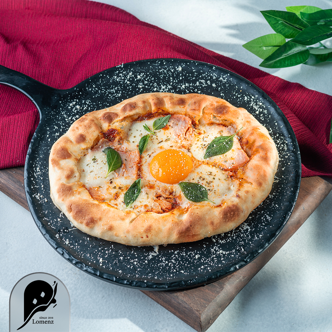 خمیر پیتزا استاف کراست،۷۰ گرم سینه بوقلمون،پنیر موزارلا،۲ عدد تخم مرغ،سس مخصوص