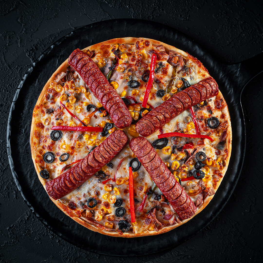 فیله مرغ گریلشده، سس پستو، پنیر موزارلا، پنیر پارمسان، ریحان تازه، خمیر پیتزا.